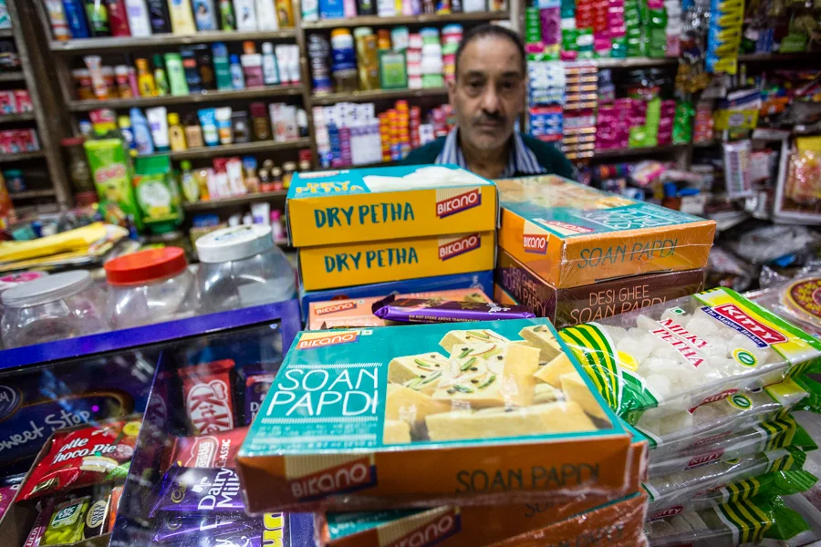 As I made my way behind the curtain, the rest of the Arun’s life come into view. The bed where the family ate and slept occupied most of the space. Next to the bed was an outhouse-sized scullery. The walls of the room were bare save a calendar covered by a purse and an Airtel poster, for which I suppose they received a stipend to display in their shop.