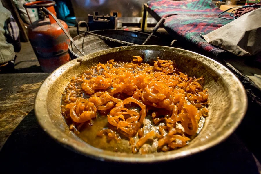 Jalebi, dough fried in a coil shape dipped in sugar syrup, is an ubiquitous Indian sweet.
