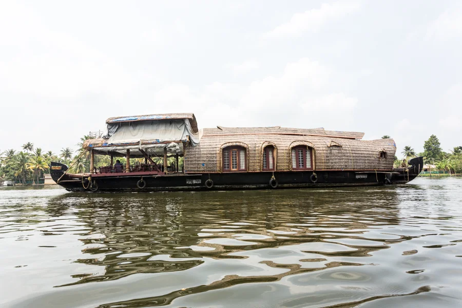 Luxurious thatched houseboats can be rented by the day.