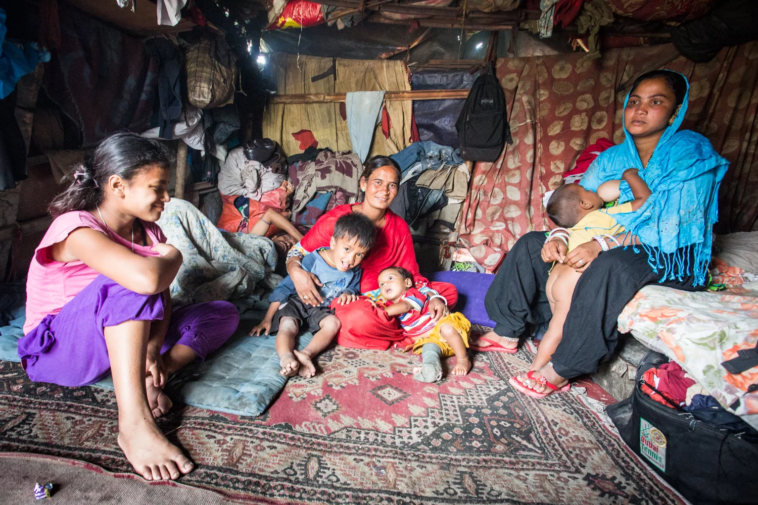 Rajasthani immigrants inside their makeshift home erected in an unused field in Kathmandu. This family will be the subject on a future piece on women and the begging economy.