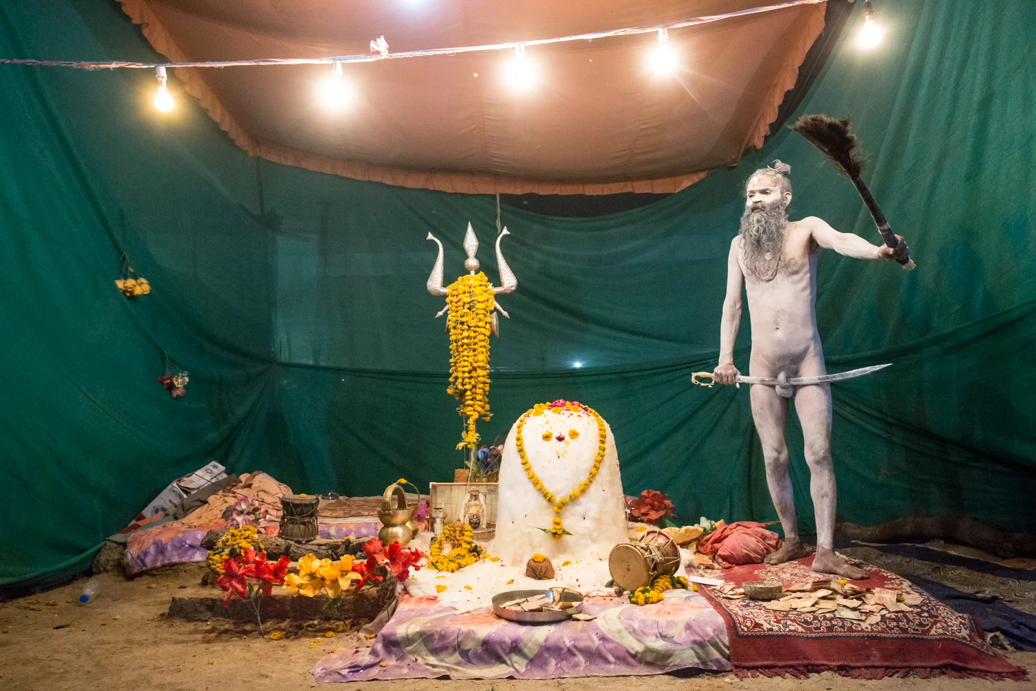 Some Sadhus sat or stood in attention in front of their tents, ready for Darshan — an interaction between a lay person and a monk in which spiritual instruction or mere presencing is exchanged for a small donation. Many of the Sadhus invited us inside their tents, using sticks to shoe away our following of gawkers. “Cello!” “Cello!” (“Move along!” “Move along!”), they commanded, raising their sticks menacingly — going so far a to strike at anyone who dared linger a moment too long.