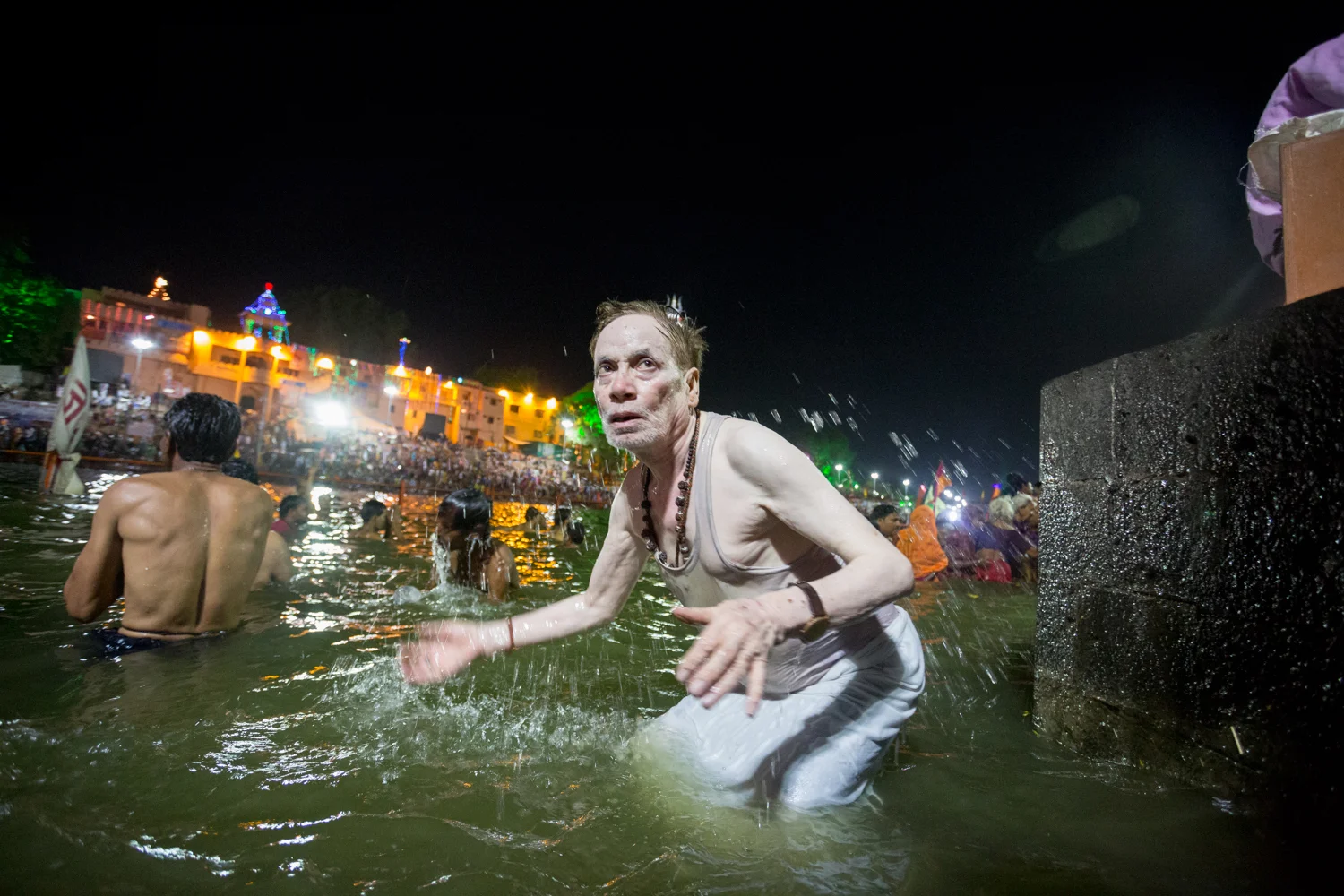 It wasn’t until the dawn of the third day as I surveyed thousands of worshippers — fighting for a spot into the Shipra as if at any moment it would all disappear — that I was struck by the spiritual gravitas of Kumbh Mela for Hindus. Awash with the immensity of the symbolism of ablution as form of ritual purification, I followed suit in clamoring my way down the steps of the ghat through the seemingly impenetrable wall of wet skins.