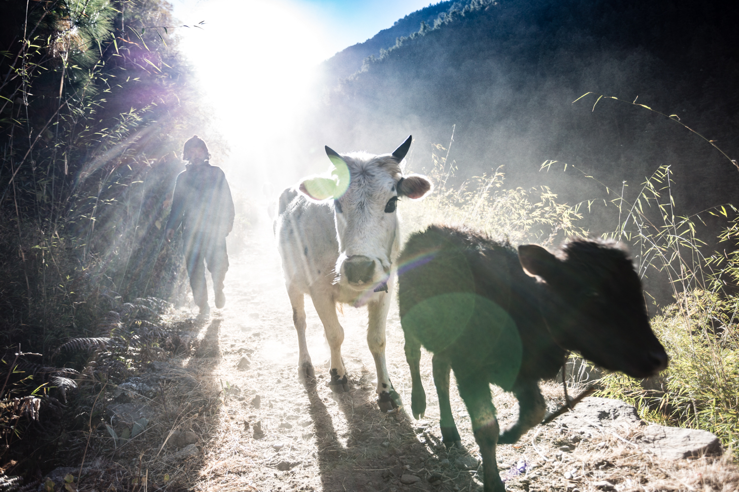 The narrow mountain paths must be shared with locals going about their business of transporting goods and herding livestock.