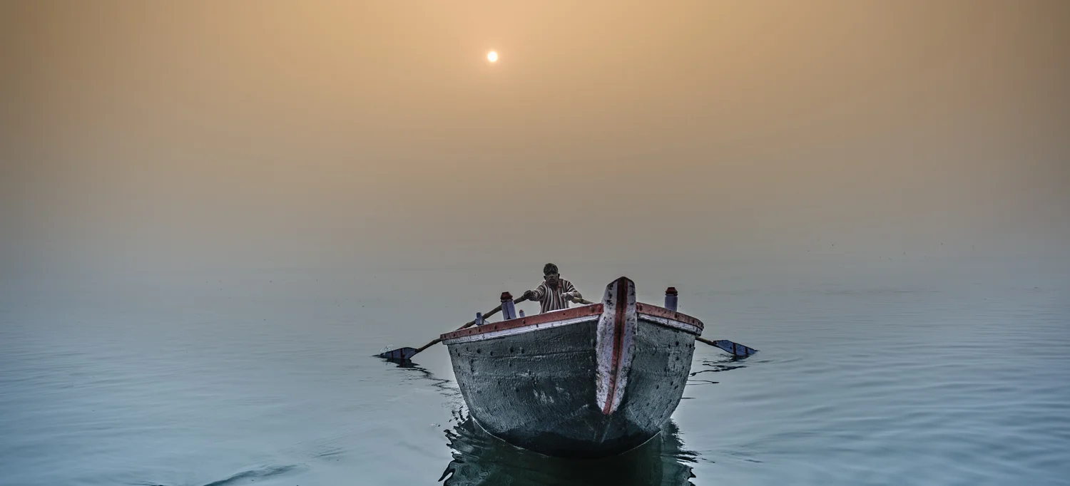 Sunrise at the Ganges River, Varanasi, India.