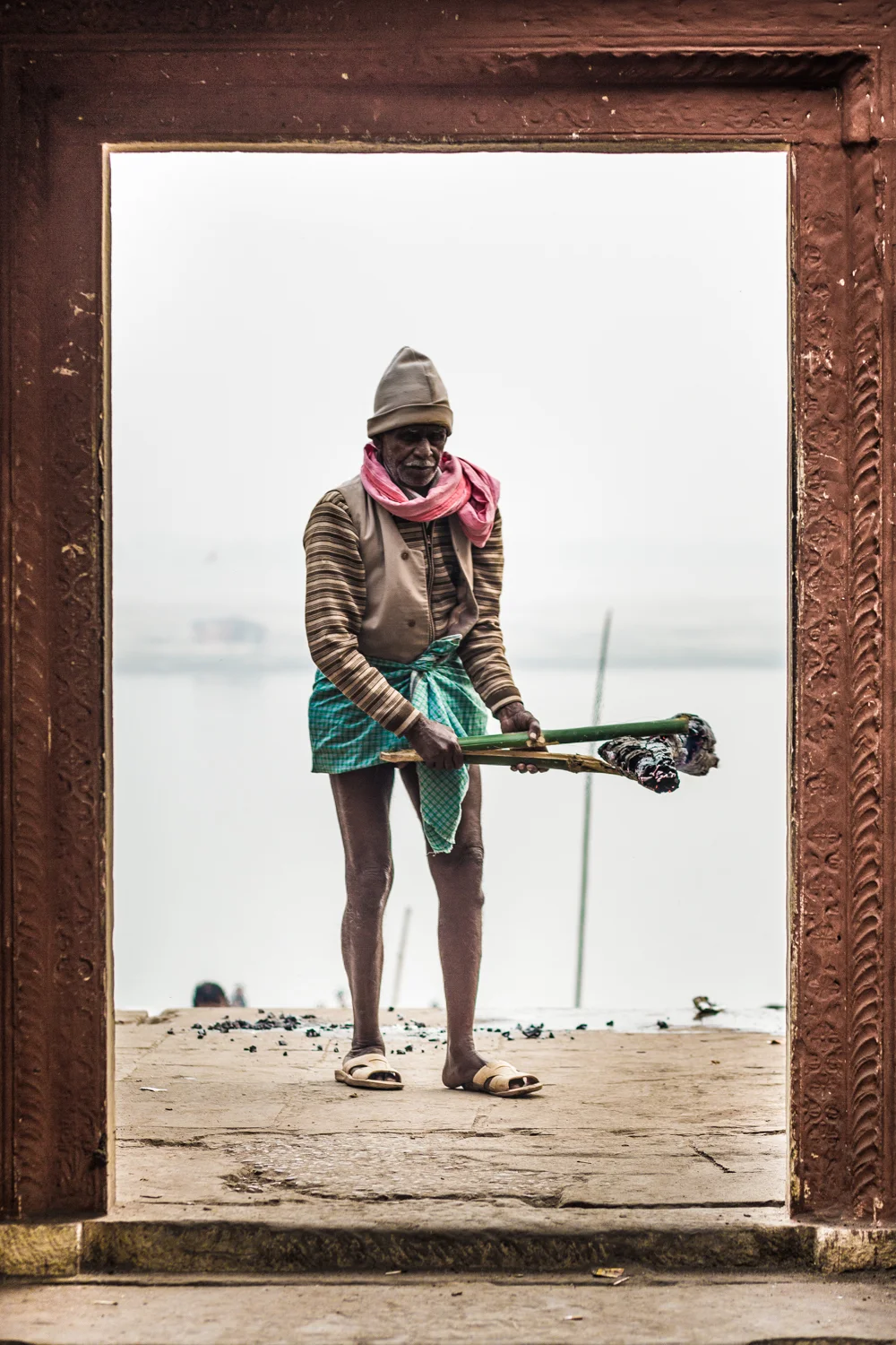 As it were, Hindus believe that those who die in Varanasi exit time altogether by achieving moksha (liberation from the cycle of rebirth). Around three-hundred bodies are cremated everyday along the banks of the Ganges. Manikarnika, the main burning ghat, contains no less that half a dozen burning pyres at any given time, day and night. Around two hundred and fifty bodies are cremated each day at this ghat. Ash and leftover remains are deposited in the Ganges. Since touching a dead body is taboo for most Hindus, this grisly task is left to the Dalit caste (or “untouchables”) whose members have been performing the chore of turning dead to dust for thousands of years.