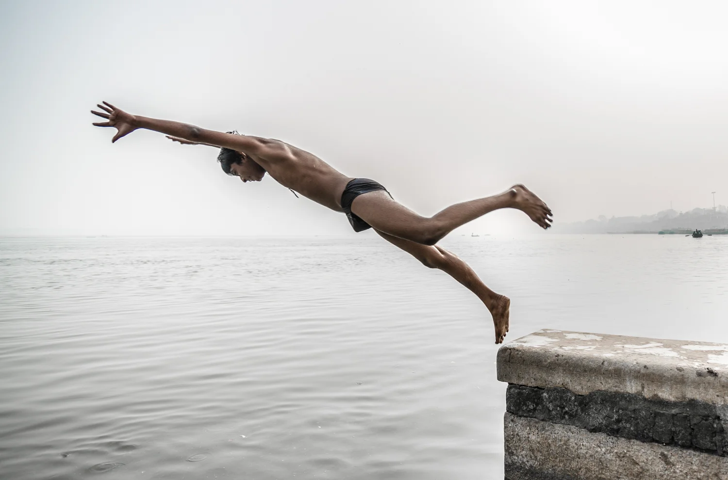 Boy jumping into the Ganges.